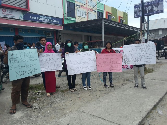 Mencurigai ada yang tidak beres dengan sistem yang ada, mahasiswa LP3I menggelar aksi demo. Aksi yang gelar pada 20 Maret 2017 pagi tadi sekitar pukul 09.00 dan bertitik di Jln. Setia Budi tersebut guna menuntut dan meminta kejelasan status dan izin ke Dinas Pendidikan Kota yang ternyata status dan izin dikeluarkan hanya LKP (Lembaga Kursus dan Pelatihan).