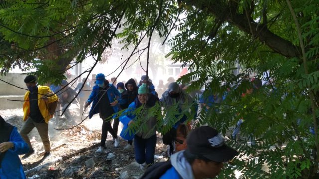 Awalnya aksi ini berlangsung damai, namun tidak berlangsung lama karena hanya 2 anggota DPRD yang bersedia menemui massa, sedangkan aliansi mahasiswa menuntut semua anggota DPRD untuk turun menemui massa aksi. Lemparan batu dari penyusup/provokator juga mengakibatkan keadaan aksi semakin memanas. Hal ini membuat aparat harus maju dan mengejar para demonstran. Tidak hanya itu, aparat juga menembakan gas air mata dan water cannon. Tindakan aparat ini membuat rombongan demonstran berhamburan untuk menyelamatkan diri.