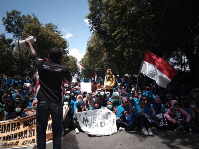 LPM Produktif– Selasa, 1 Oktober 2019 mahasiswa Universitas Tadulako kembali turun ke jalan pada pukul 10.00 Wita dengan menggunakan almamater kebanggaan menuju Kantor DPRD di Jalan Sam Ratulangi untuk melakukan aksi damai yang dinamakan dengan Gerakan Mahasiswa Untad (GMU).