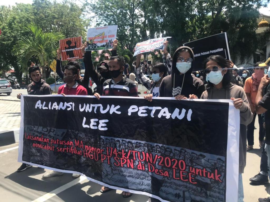 Sebelumnya kasus tersebut telah berlangsung lama sejak tahun 2009 dan belum ada titik terangnya sampai sekarang. Dalam kesempatan kali ini mereka menuntut agar melaksanakan putusan Mahkamah Agung 174_K/Tun/2020 dan Tolak Peninjauan Kembali PT. SPN. Aksi kali ini juga dihadiri oleh seluruh komponen masyarakat Desa Lee, seperti Ketua DPD, perangkatnya sampai ke tingkat RT.