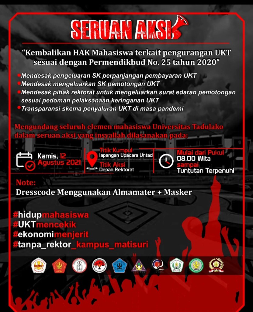 Seruan aksi yang akan dilaksanakan oleh Badan Eksekutif Mahasiswa (BEM) se Universitas Tadulako (Untad) Palu, pada 12 Agustus 2021 mendatang.
