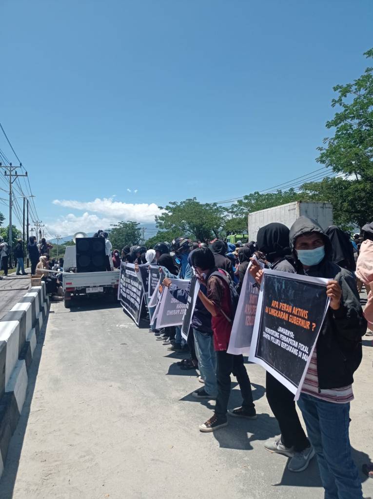 Aksi massa yg dilakukan di Depan Polda Sulteng tidak mendapatkan respon dari pihak terkait, kemudian massa bergerak menuju ke kantor Gubernur Sulteng.