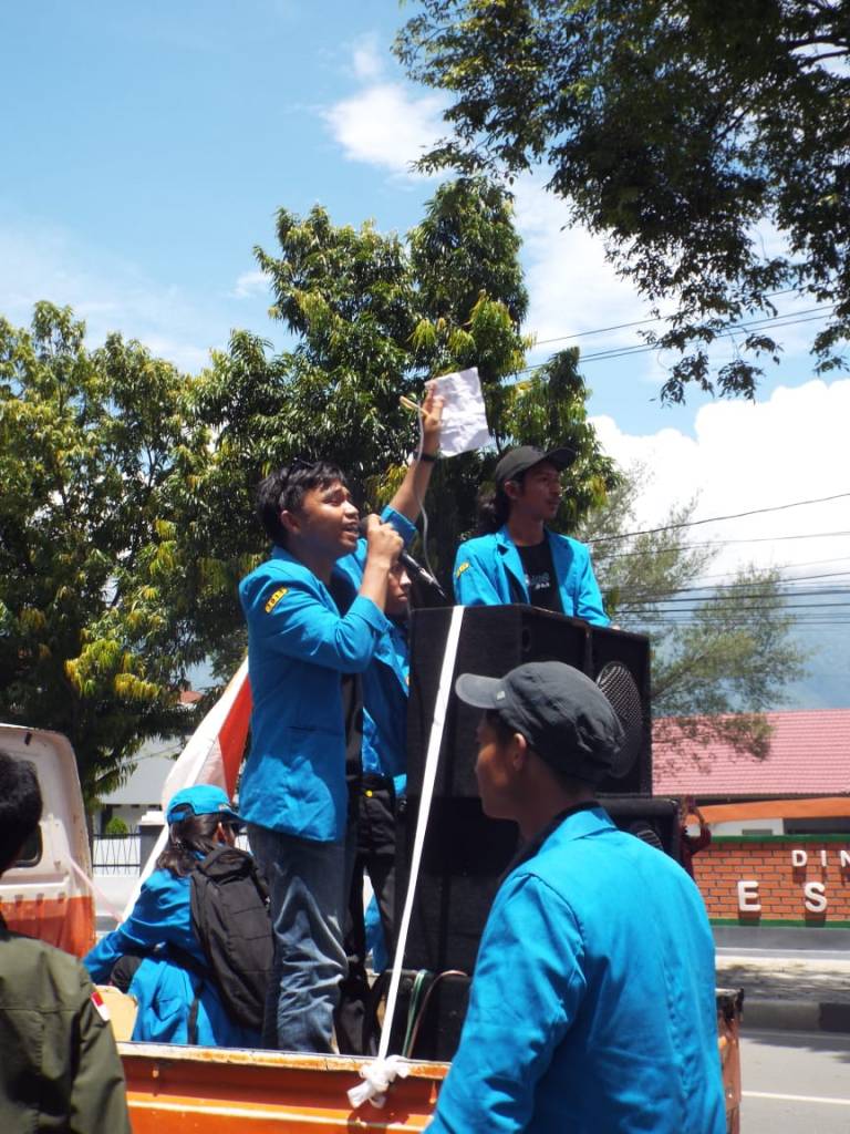 “Massa aksi berjanji dalam waktu 3 hari tuntutan mereka tidak laksanakan mereka akan turun lagi kejalan untuk melakukan orasi.” pungkas Mulki sebagai korlap.