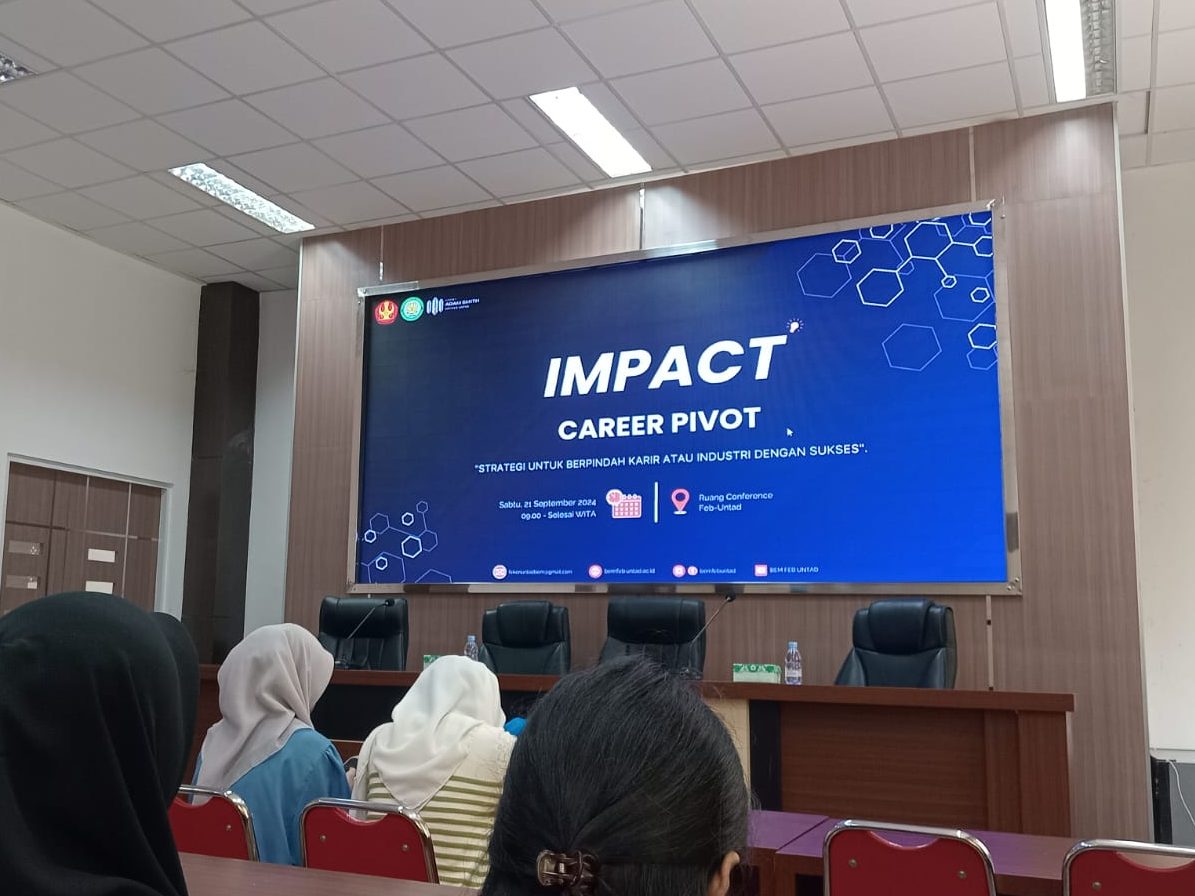LPM PRODUKTIF – (21/9) Badan Eksekutif Mahasiswa (BEM) FEB-UNTAD bagian Departemen Pendidikan, Budaya, Riset dan Teknologi (DIKBUDRISTEK) menyelenggarakan Kegiatan Impact Career Pivot dengan Tema “Strategi untuk berpindah Karir atau Industri dengan Sukses” . Yang dilaksanakan di Ruang Conference FEB-UNTAD, pada pukul 09.00 – Selesai.