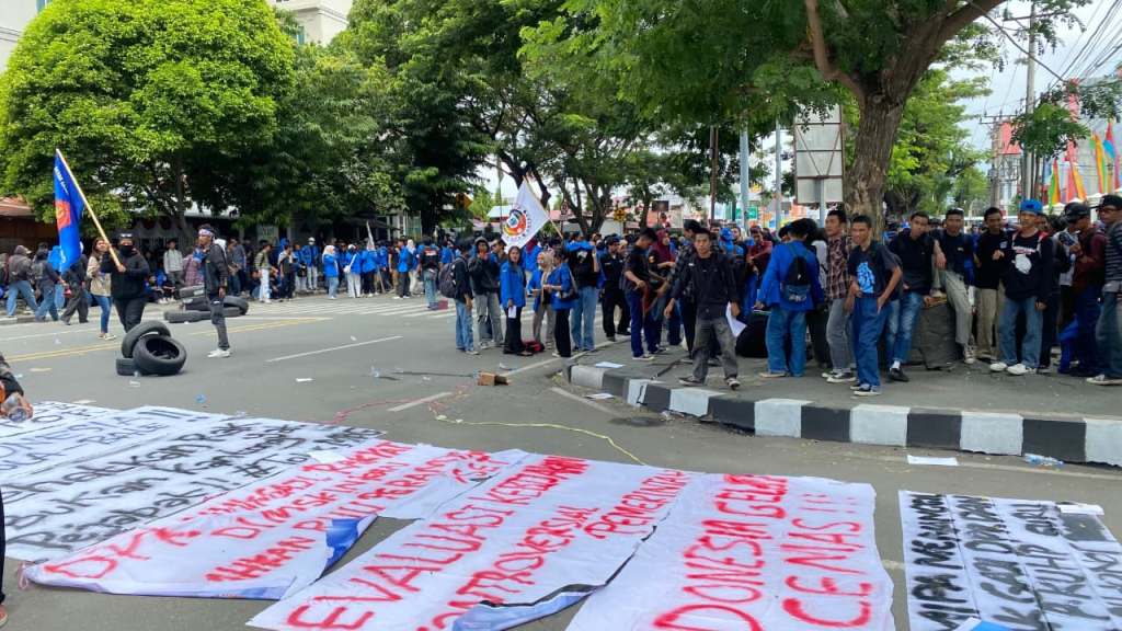 Situasi semakin memanas ketika di tengah massa muncul oknum yang melakukan provokasi. Aksi lempar-lempar dengan botol dan benda lain ke arah aparat memicu ketegangan yang sudah ada. Massa terus berupaya mendorong gerbang DPRD, sementara aparat tetap menahan dari sisi dalam. Ketegangan inilah yang kemudian memicu bentrokan terbuka.