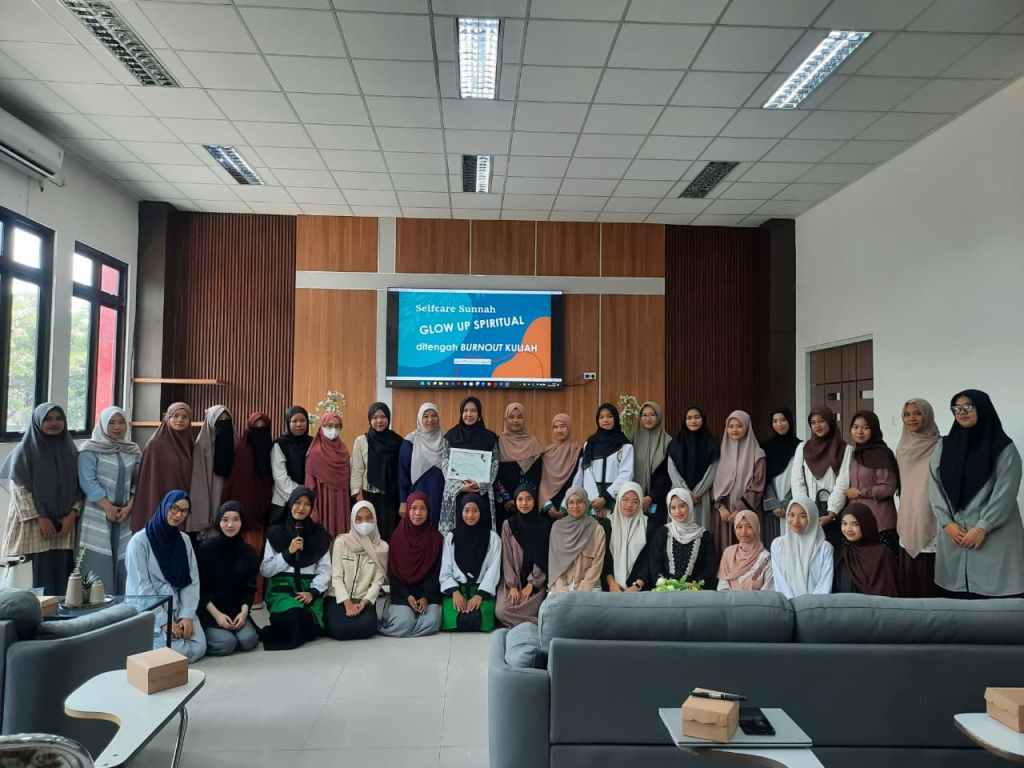 Dalam pemaparannya, beliau menekankan bahwa konsep self care dalam pandangan Islam sejatinya tidak hanya berorientasi pada perawatan diri secara fisik atau emosional semata, tetapi juga mencakup dimensi spiritual yang bersumber dari ajaran dan sunnah Rasulullah SAW. Melalui keseimbangan antara aktivitas duniawi dan ibadah, seorang muslimah diharapkan mampu mencapai ketenangan batin yang autentik, sehingga terhindar dari kelelahan mental yang kerap dialami mahasiswa di tengah padatnya rutinitas perkuliahan.